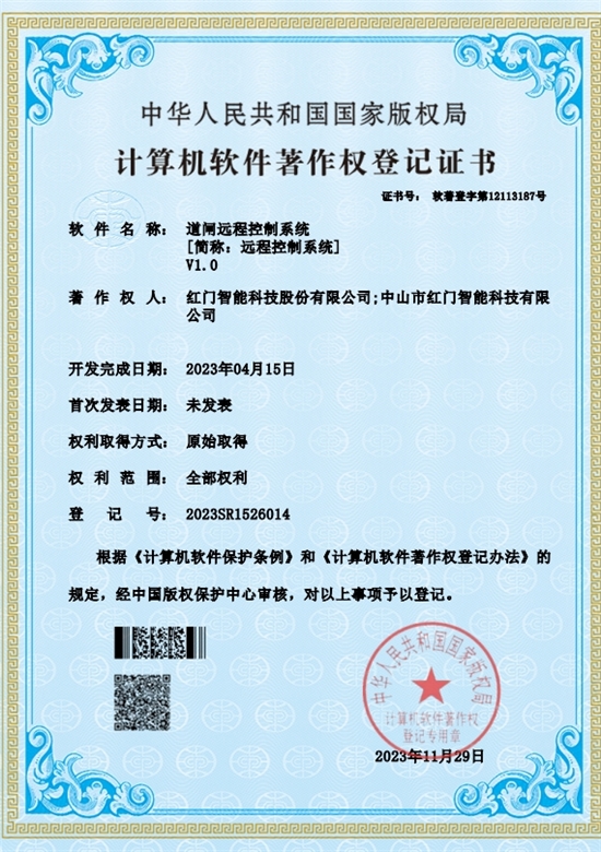 智能道闸控制系统V1.0-证书