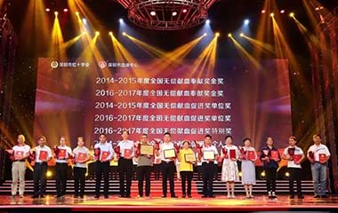 深圳市人民政府副秘书长刘昂、深圳市红十字会专职副会长兼秘书长张英姬、深圳市卫生健康委员会副主任吕光华、深圳市血液中心主任朱为刚等领导出席了晚会,并为现场110名捐血献髓代表进行了颁奖表彰。