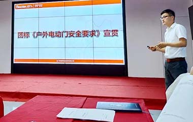 标准宣贯会上,吴怡锋首先介绍了标准分类和国家标准体制,让大家对国家标准体制有更加深刻地理解。然后再对《安全电压开门机》、《户外电动门安全要求》两项团体标准逐一宣贯,以标准的主要技术指标为切入点,结合红门自身产品特点,详细讲解标准的重要指标要求,并举例说明,帮助大家更好地消化理解标准内容,引导大家依照标准组织生产,提高产品质量,推动红门产品高质量发展。